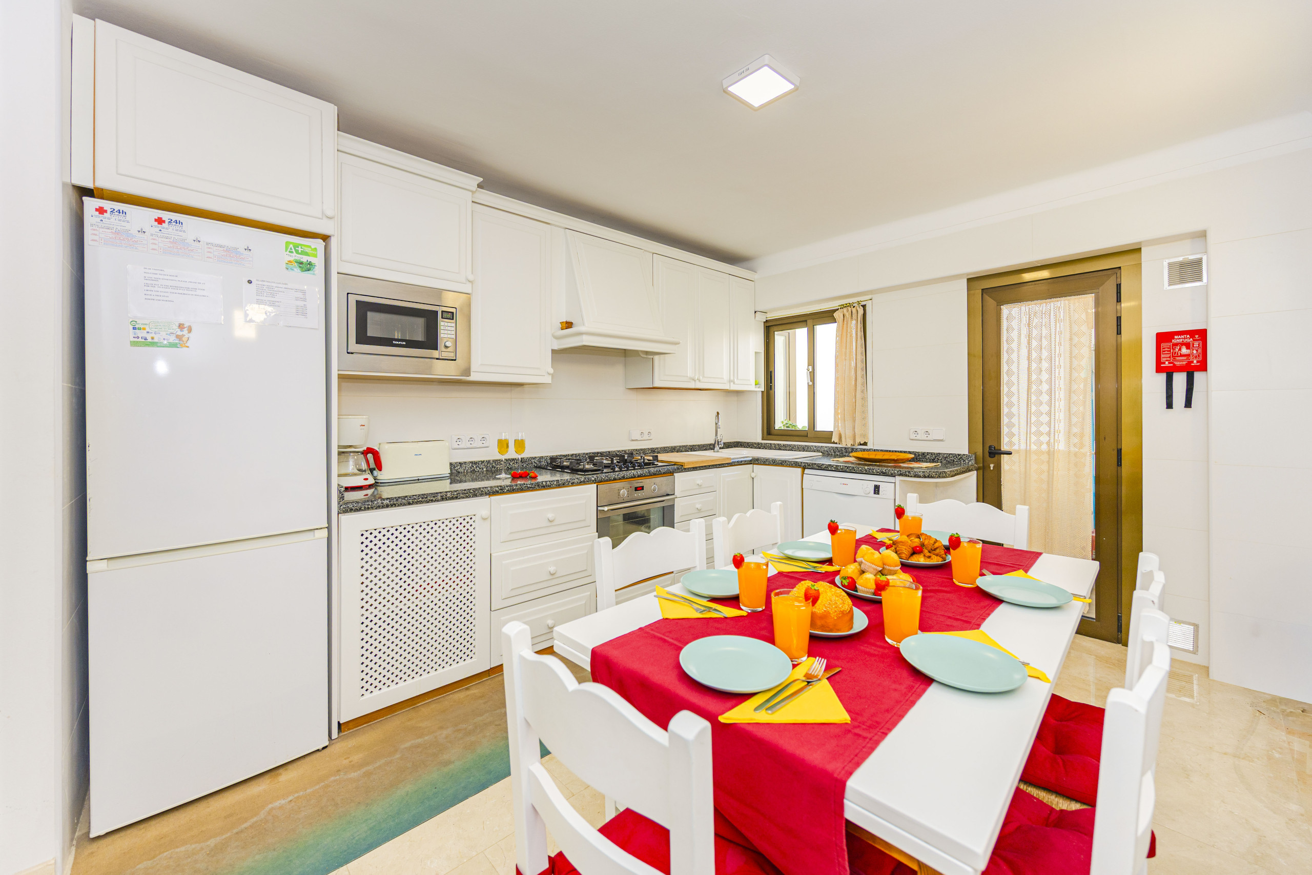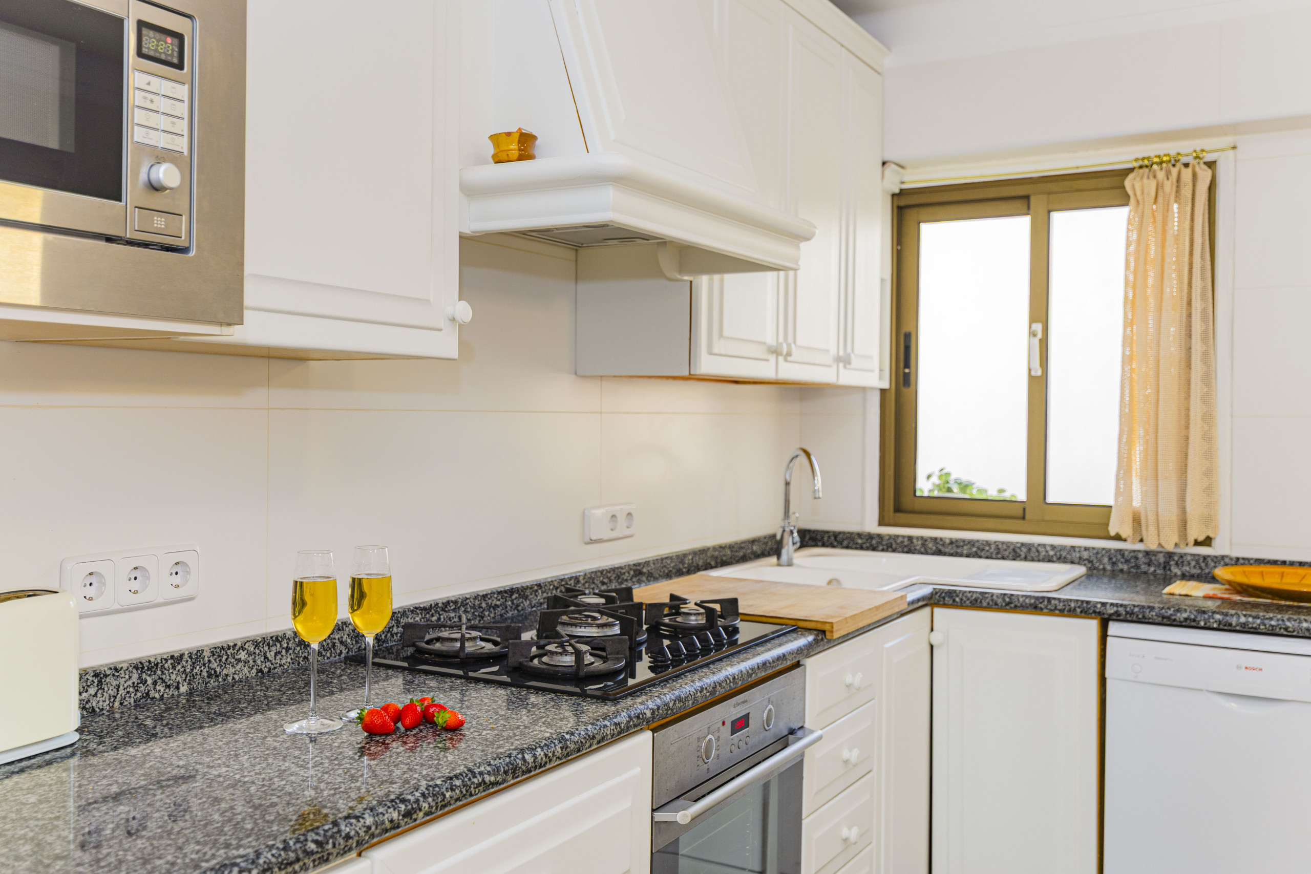 – Fully equipped kitchen with oven, ceramic hob, microwave, refrigerator, freezer, dishwasher, kettle and coffee maker.